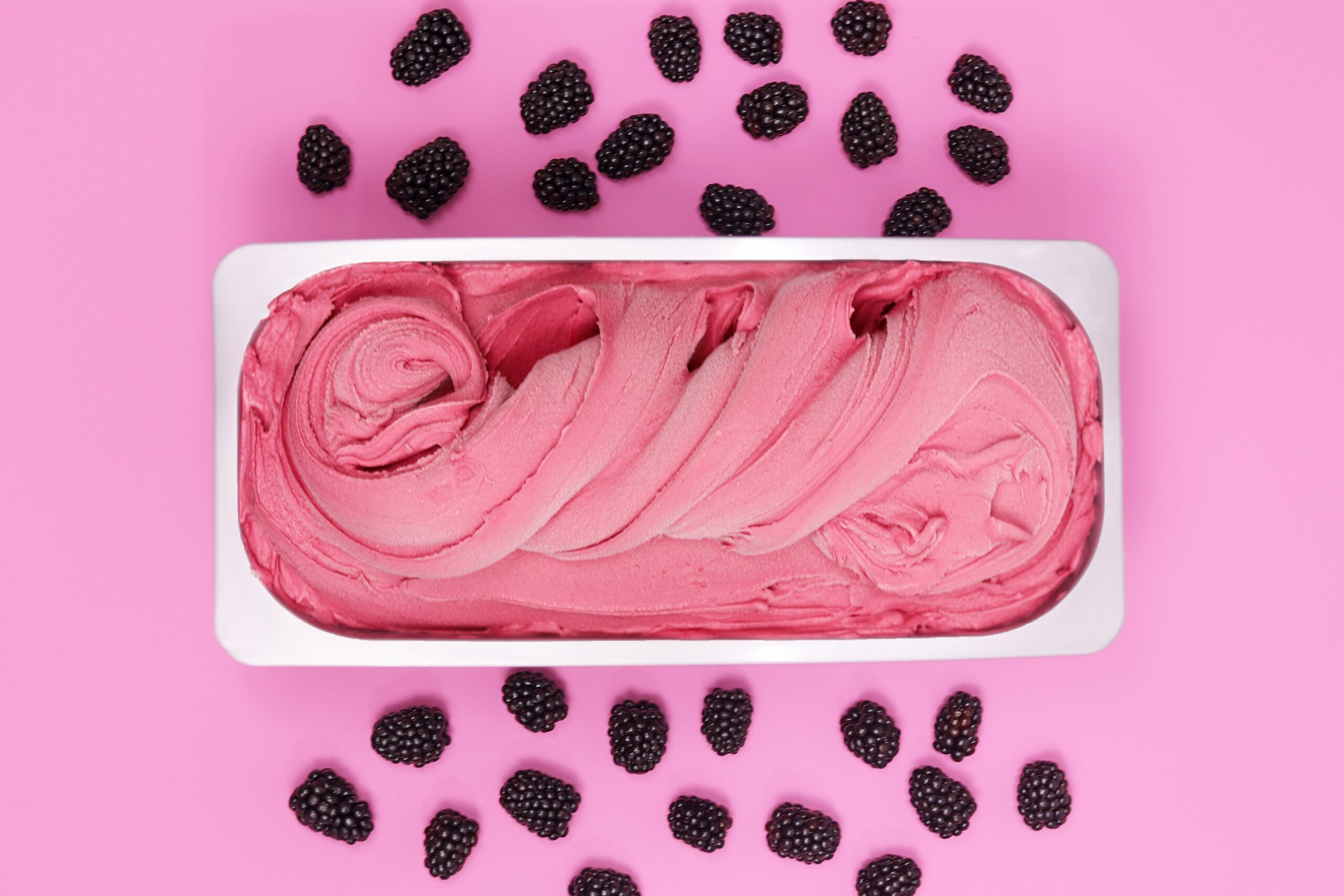 Creamy and tangy boysenberry gelato made with plant-based ingredients.