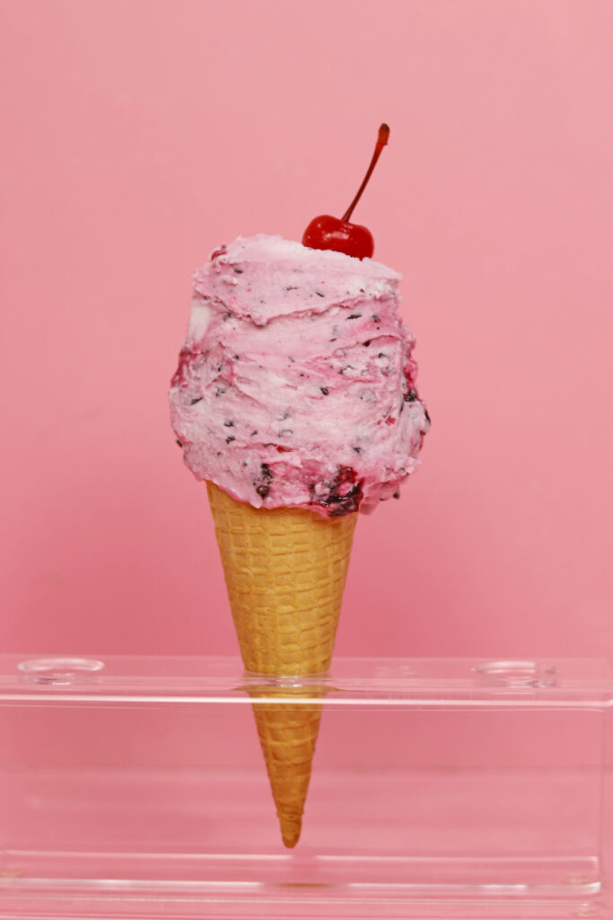 Creamy coconut gelato base, swirled with tart amarena cherries and shards of dark chocolate stracciatella.